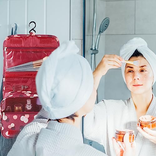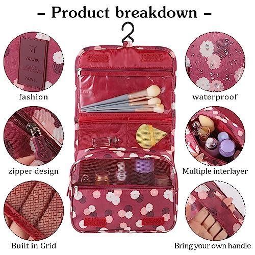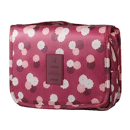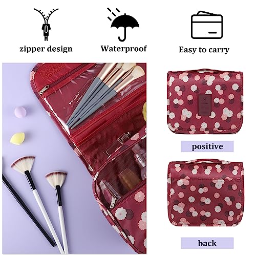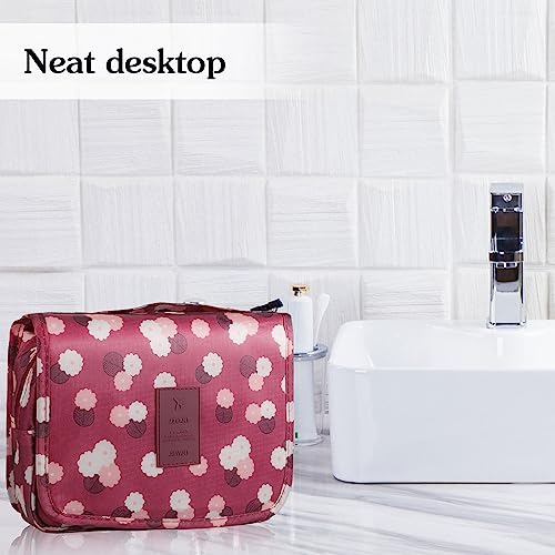 SUMAJU - شنطة مستحضرات تجميل سوماجو بتصميم معلق مقاومة للماء، شنطة مكياج محمولة للسفر بمقبض متعدد الوظائف، منظم أدوات المكياج مع خطاف للنساء والبنات (لون أحمر كلاريت)