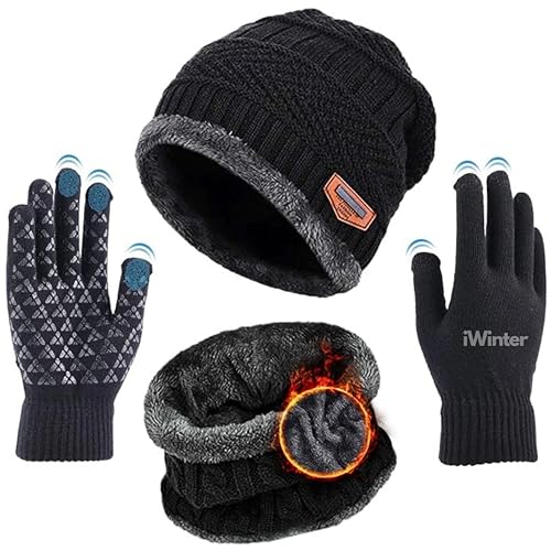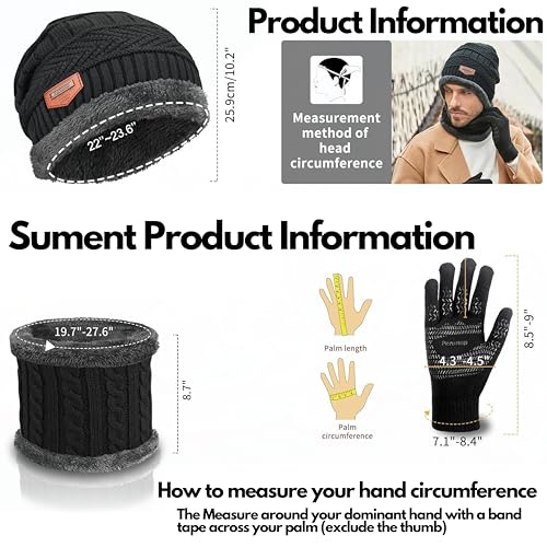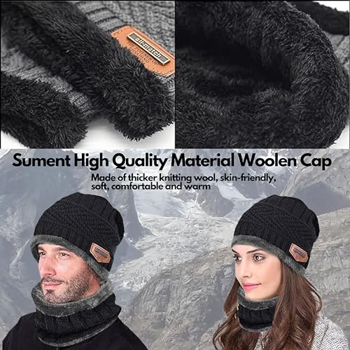 Sument - قبعة صغيرة من سومنت، باللون الأسود، مصنوعة من الصوف للجنسين، بتصميم بيني مع غطاء للرقبة وقفازات