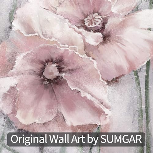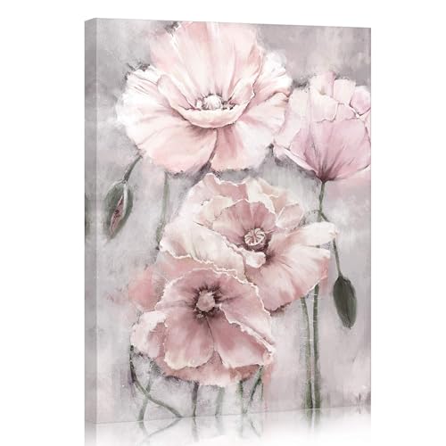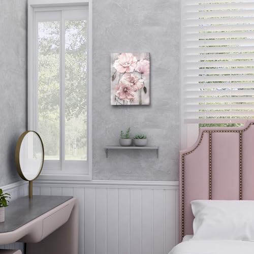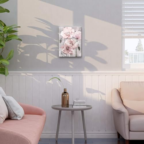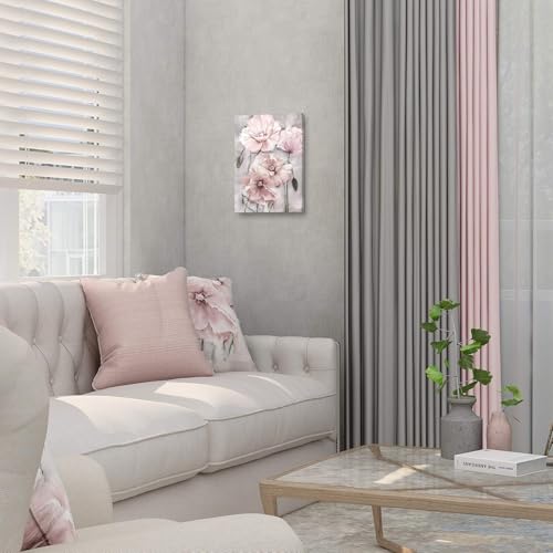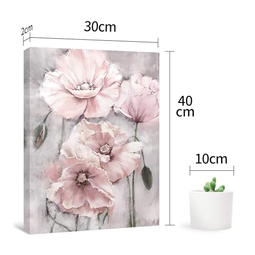 SUMGAR - SUMGAR Pink Wall Art Flowers Canvas Prints Floral Blossom Pictures Blush Grey Paintings Artwork Framed for Women Girl's Bedroom Bathroom Home Decor 30x40cm Gift