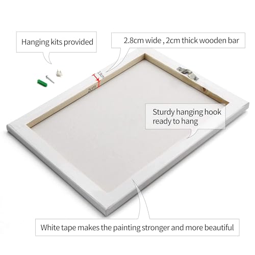 - 【Strong Wooden Bars】The canvas print is firmly stretched on 3cm wide wooden bars, double sealed with white tapes on the wood surface.