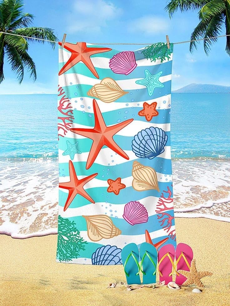 Generic - Summer Beach Towel, Microfibre, Fast Drying, 90 x 180 cm, Colourful Design (Sea Star)