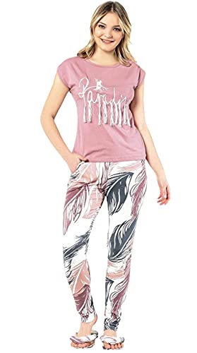 Generic - بيجاما كاجوال صيفى-بنطلون ابيض مشجر وبلوزه بينك للنساء