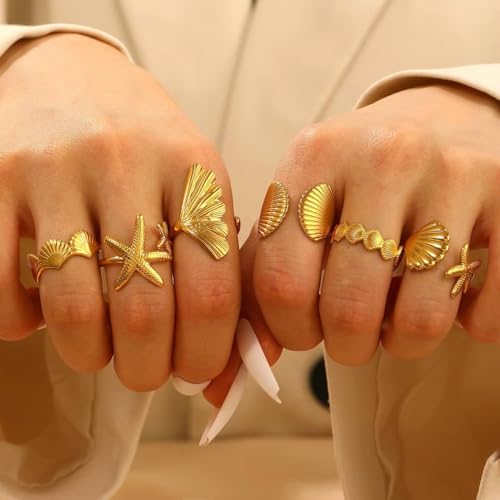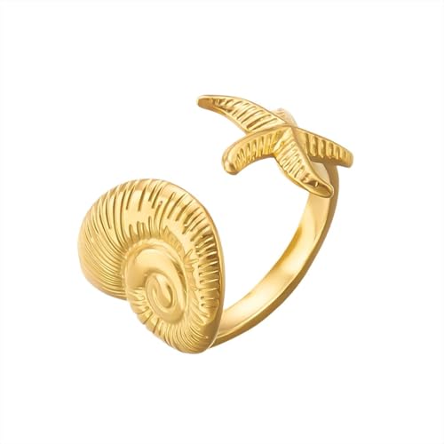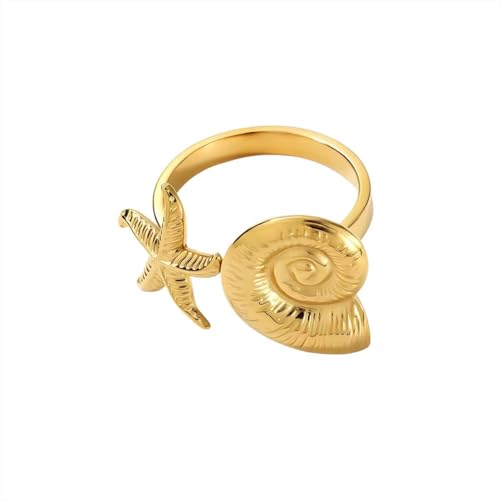 Generic - Summer Ocean Style Shell Starfish Conch Adjustable Golden Ring Plated Stainless Steel Jewelry Gift