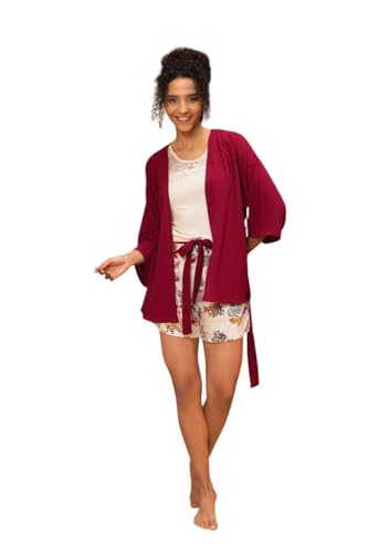 Generic - Summer Pajama 3 Piece Top Restaurant Lace Robe and Shorts Cotton Material For Women