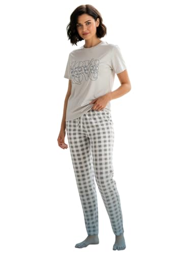 Generic - بيجامة صيفي نص كم تيشيرت بتصميم شعار و بنطلون بتصميم منقط خامة قطن للنساء
