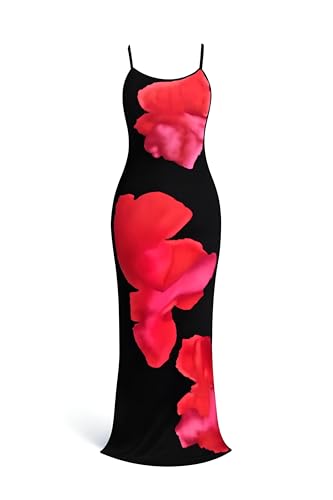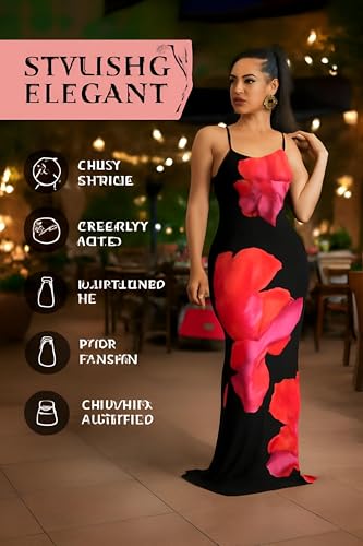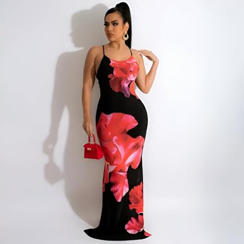 Generic - Summer Party Outfit - Floral Cotton Maxi Dress with Strappy Neck, Backless Cutout, and High Slit for Elegant Casual Events