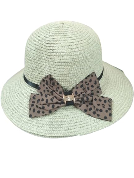 Generic - Summer Straw Sun Hat with Leopard Print Bow, Summer Beach Straw Hat