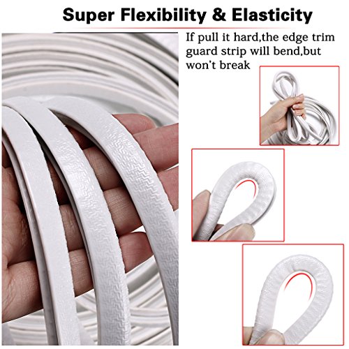 YU WELL - واقي حافة باب السيارة 16 قدم من سومناكون - واقي مطاط مرن لحماية حافة باب السيارة، القارب، المركبات، والمعدات المعدنية والزجاجية، شرائط حماية متينة ومحكم الاغلاق وقابلة للإزالة، لون ابيض