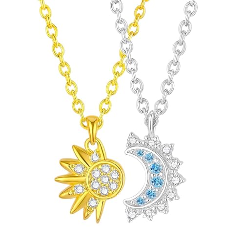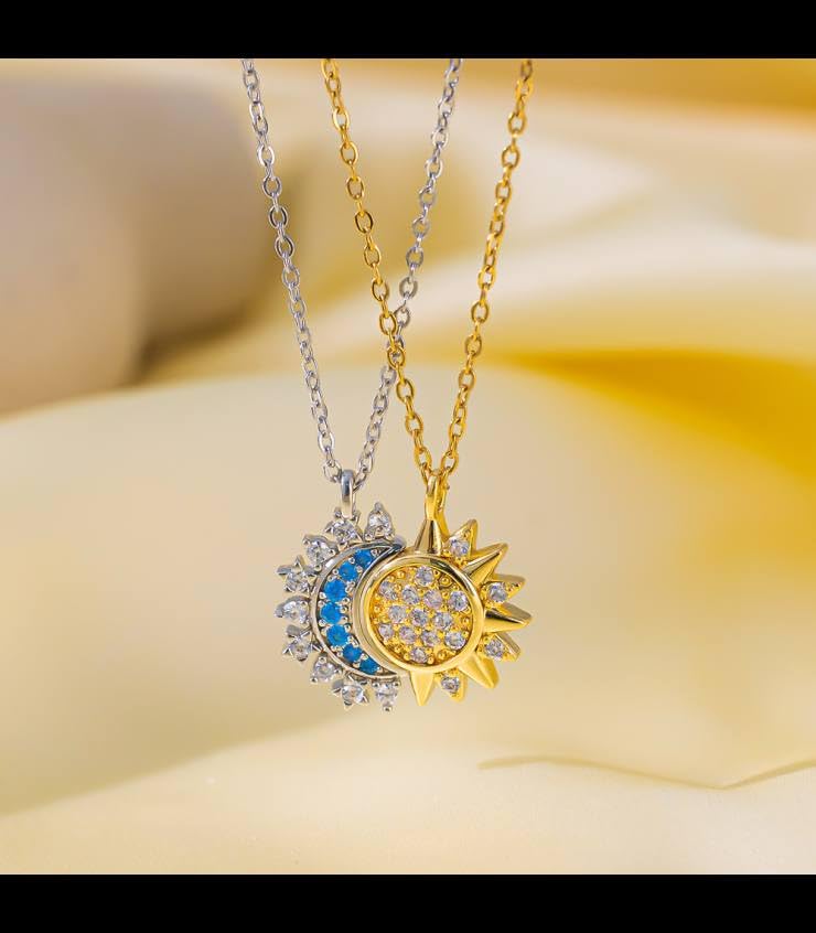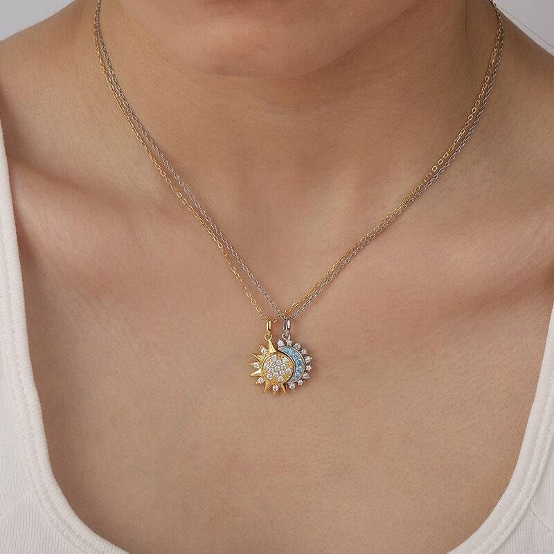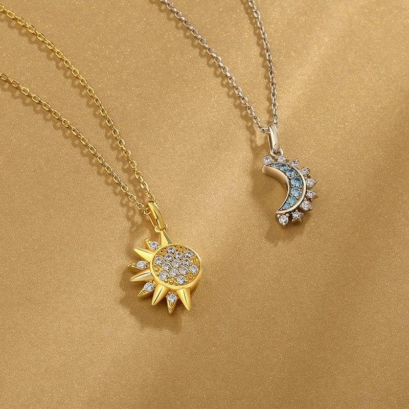 Generic - مجموعة قلادات الشمس والقمر للنساء - مجوهرات بدلاية ذهبية وفضية بلونين مع كريستالات لامعة، هدية مطابقة سماوية