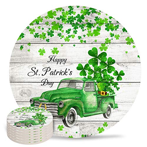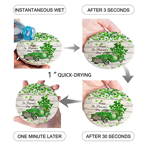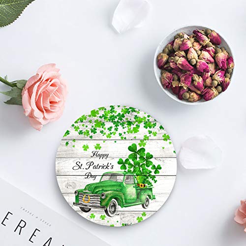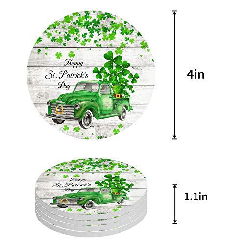 SUN-Shine - SUN-Shine St. Patrick's Day Truck with Shamrock Leaf Coasters for Drink, Absorbent Ceramic Stone Coaster Set with Cork Base for Kitchen Table Cups and Mugs, Set of 4, Wood Board