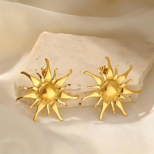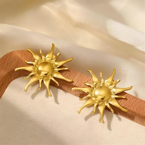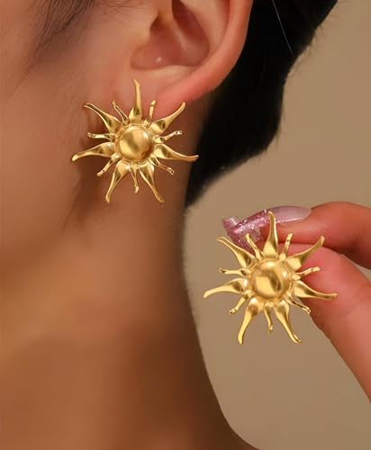 Generic - Sunburst Dangle Earrings - Big punk-inspired sunshine earrings in stainless steel with dramatic sunray design for statement outfits.