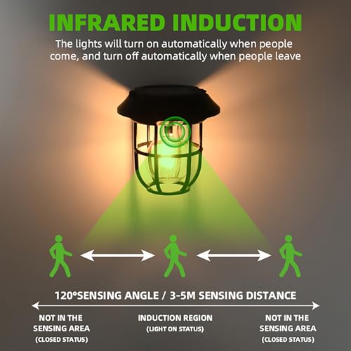 Sunfee - 2 Pack Solar Lantern Wall Lights Fixtures with Motion Sensor, Solar Powered Porch Light, Vintage Hanging Solar Wall Sconce Outdoor,for Porch, Yard