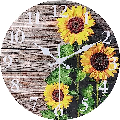 Generic - ساعة حائط دائرية بتصميم زهرة عباد الشمس مقاس 32 سم لديكور الحمام، ساعة خشبية صامتة بدون دقات