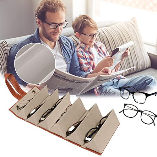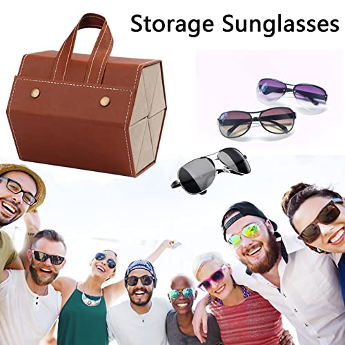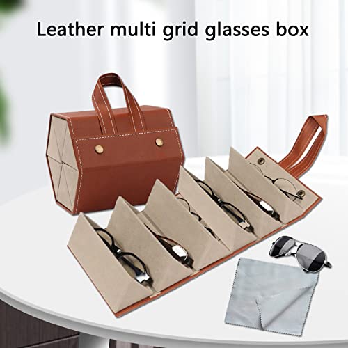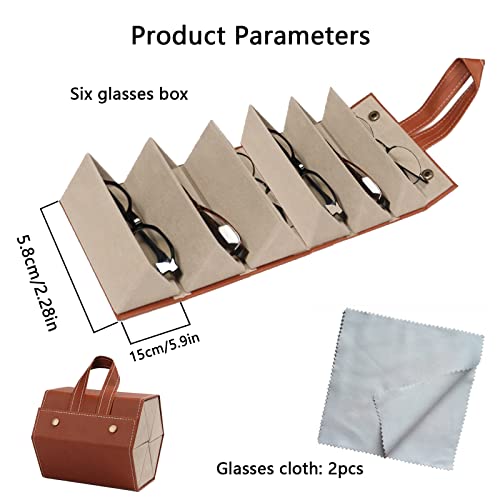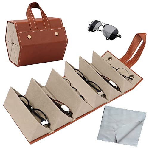 HQHG - Sunglasses Organizer with 6 Slots, Multiple Sunglass Holder Travel Glasses Case Storage, with 2 Glasses Cloth, Brown