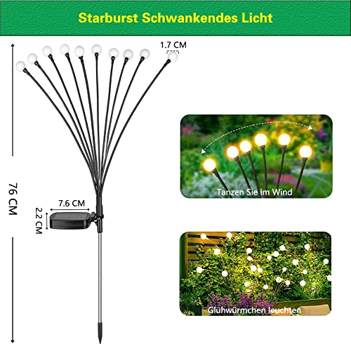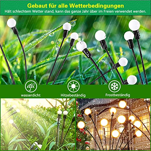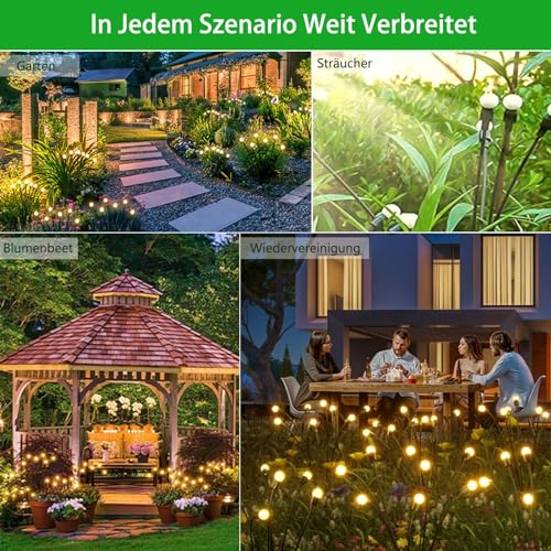 - These solar garden firefly lights can create a wonderful light effect and create a romantic and festive atmosphere, fit with flowers and fences, perfect for home, balcony, garden, landscape decoration, backyard, front garden, park, passageway, patio, walkway, outdoor decoration. Christmas, Easter, carnival gifts, perfect garden decoration. Simply flip the switch and enjoy the most beautiful decorative solar lights in the world.