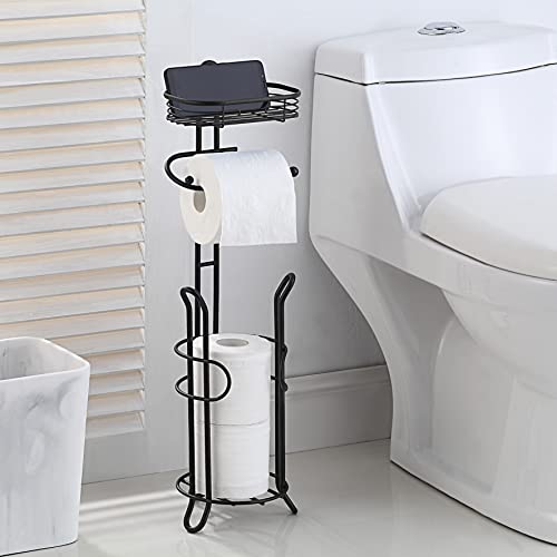 SunnyPoint - صني بوينت حامل تخزين ورق التواليت ثقيل الوزن للحمام مع احتياطي ورف، مساحة الاحتياطي بها مساحة كافية لتخزين اللفائف الضخمة. (اسود)