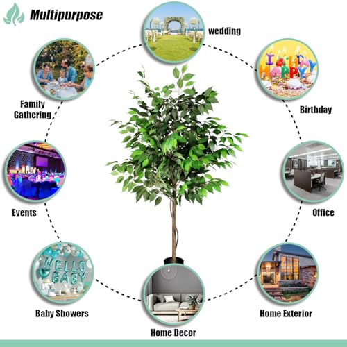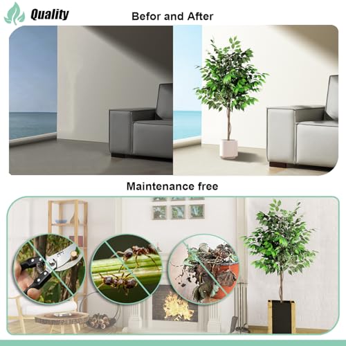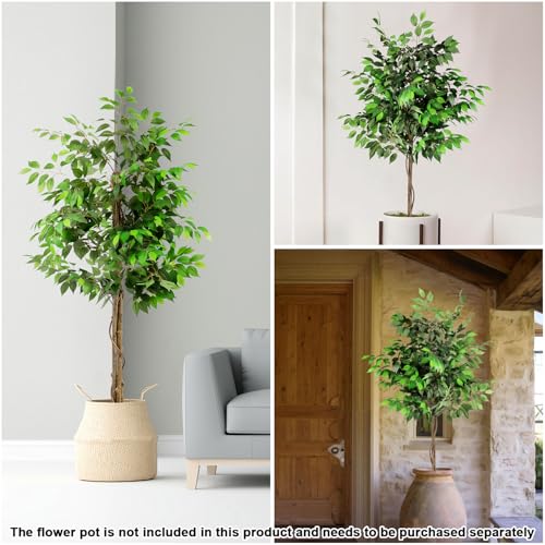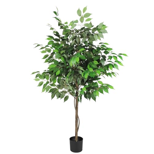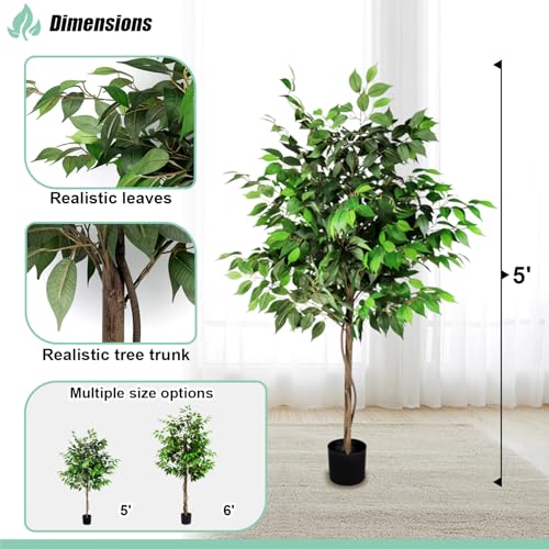 SunnyRoyal - SunnyRoyal 1 Pcs Ficus Tree 5 Feet Artificial Tree Indoor Decor Realistic Potted Design Tree for Home Office Living Room Kitchen Bedroom Décor