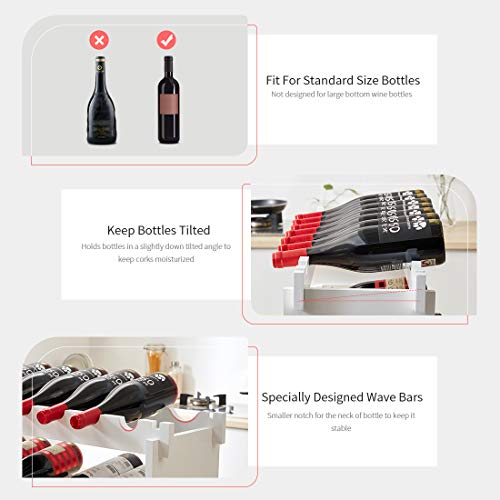 - 【18 Bottles Display Wine Rack】The wine rack countertop designed with sturdy construction holds up to 18 bottles (2 layers & 9 bottles each layer).Efficiently maximize storage space and prevent wine bottles scattered around.It fits best for longer type standard size wine bottles(about 750ML).Please note that large bottom wine bottles are not fit for this wine holder.