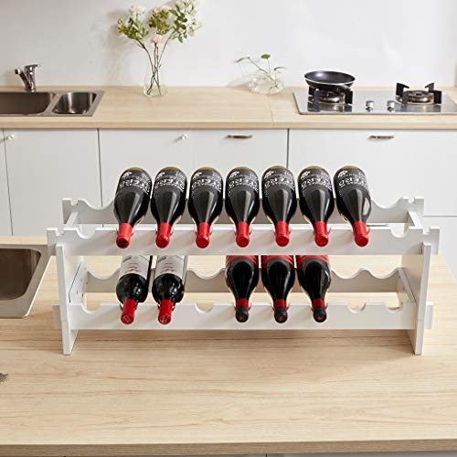 Sunon - Sunon Wine Rack 2-Tier 18-Bottle Wood Wine Holder Countertop Free Standing Storage Stand Display Wine Shelf (White)