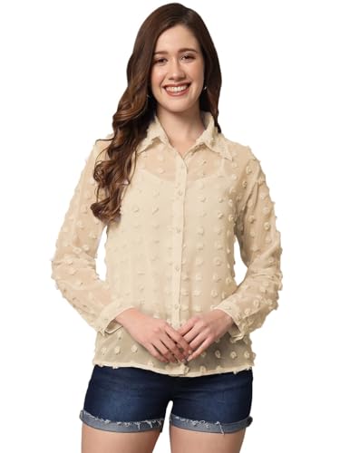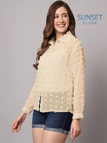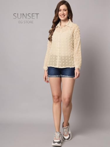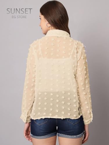 SUNSET EG STORE - بلوزة شيفون منتش بنقاط كبيرة شفافه سادة للسيدات من صن سيت