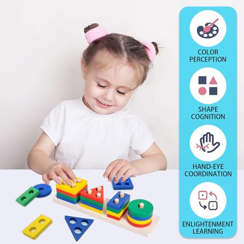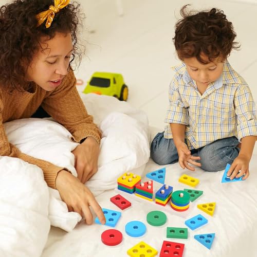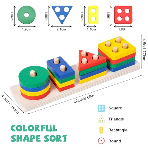 - 🌈【Education and Entertainment】: This wooden geometric sorting toy is a well-constructed toy for learning. Great value, durable, self-correcting. A must have to see how your kids enjoy showing their knowledge of colors and shapes.