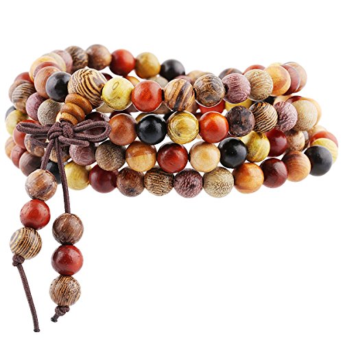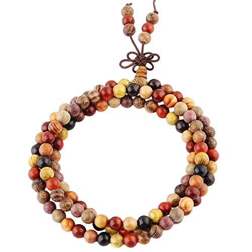SUNYIK - SUNYIK 6mm 108 Tibetan Buddhist Mala Bracelet Natural Beaded Prayer Bead for Women Men, 6mm, Mixed Sandalwood, wood stone