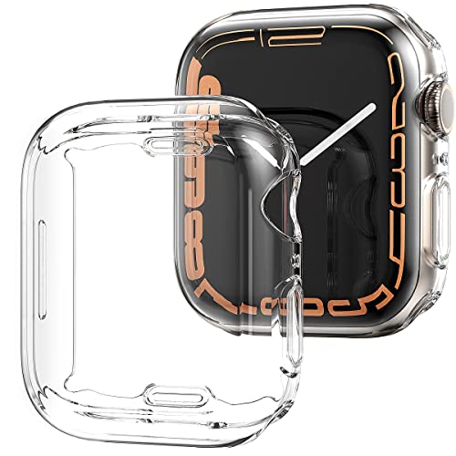 Suoman - Suoman 2-Pack Compatible for Apple Watch Series 7 45mm Case, TPU All Around Protective Shell Anti-Scratch Bumper Cover Designed for Apple Watch Series 7 45mm Screen Protector Case - Clear