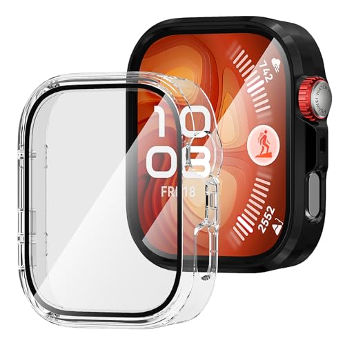 Suoman - Suoman 2-Pack for Huawei Fit4 Pro Screen Protector Case, [Full Protection] HD Ultra-Thin Tempered Glass PC Protective Case for Huawei Fit4 Pro, Black & Transparent