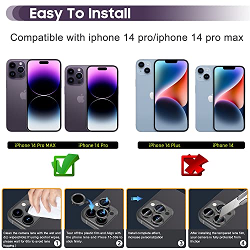 - 【الطراز المتوافق】واقي عدسة الكاميرا مناسب فقط لموبايل ايفون 14 برو/ ايفون 14 برو ماكس (لا يناسب ايفون 14 /ايفون 14 بلس) يوفر المزيج الجديد عالي الجودة حماية شاملة لموبايلك، عند الشراء يرجى التأكد من مقاس الموديل قبل الشراء.