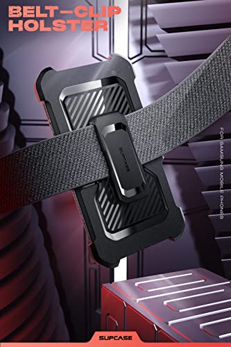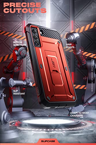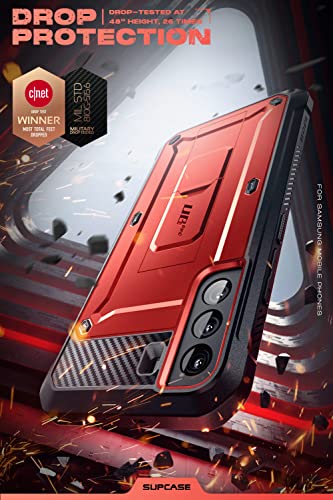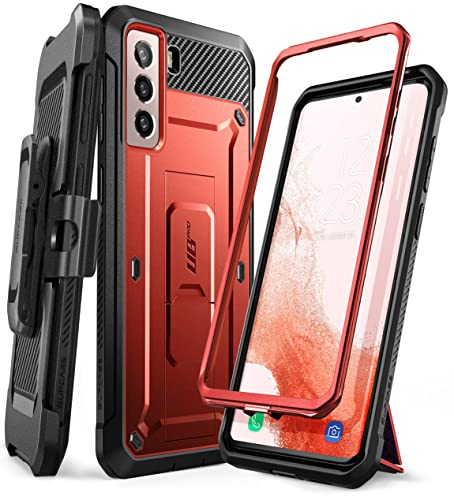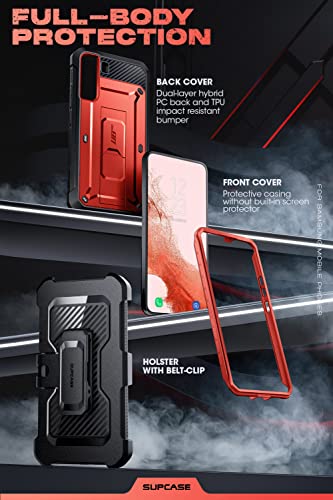SUPCASE - جراب بطبقة مزدوجة يغطي الموبايل بالكامل مزود بمشبك حزام متين ومسند بدون شاشة حماية مدمجة لموبايل سامسونج جالاكسي S22 5G (اصدار 2022) من سلسلة يونيكورن بيتل برو من سابكيس، احمر، مصد، جلد