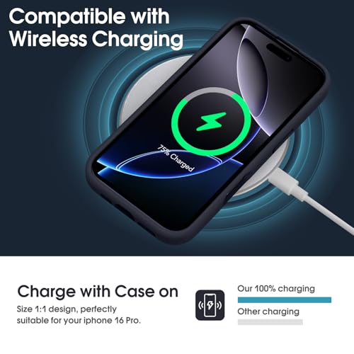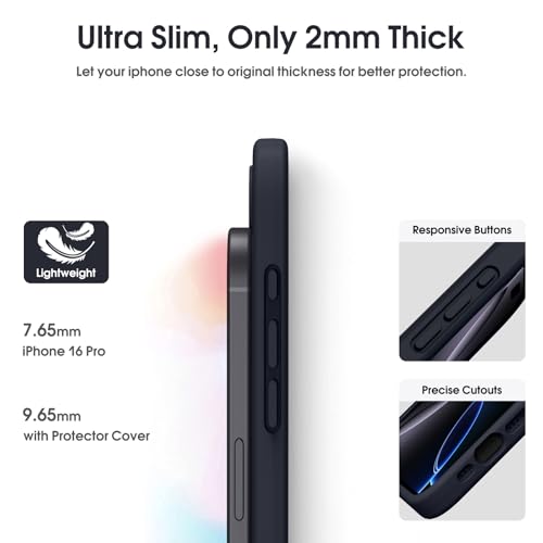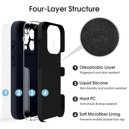 Supdeal - جراب حماية من المايكروفايبر والسيليكون سائل بـ 4 طبقات مع حماية للكاميرا بقبضة مريحة وتصميم رفيع للغاية متوافق مع موبايل آيفون 16 برو 6.3 بوصة من سوبديل، أسود