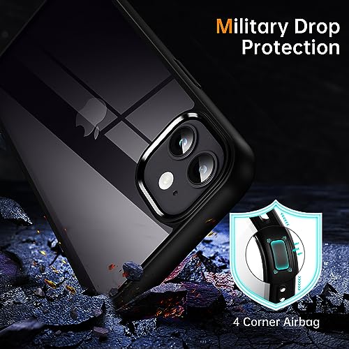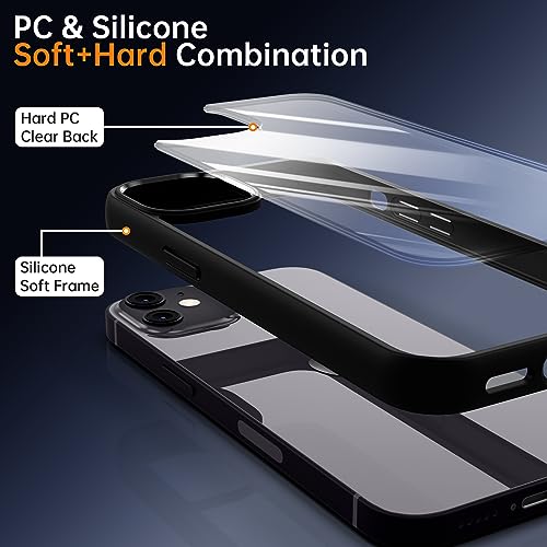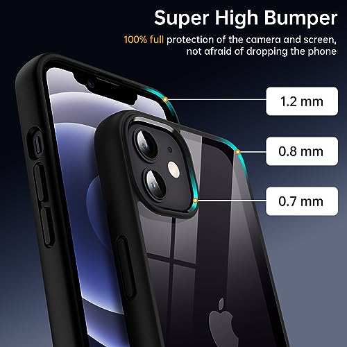 Supdeal - Supdeal Shockproof Clear Case for iPhone 12/12 Pro, [Not Yellowing] [10FT Military Drop Protection] Hard Clear Back Four Corner Airbags Drop Protection Phone Cover, 6.1 inch, Black