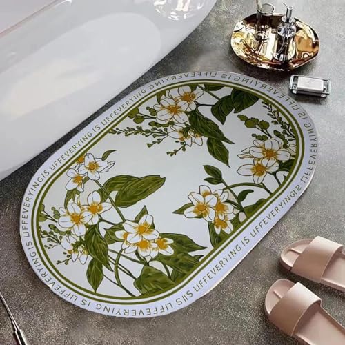 Spaceshoop - دواسة حمام فائقة الامتصاص وسريعة الجفاف بنمط زهور، صديقة للبيئة ومضادة للانزلاق، ومناسبة لمدخل الباب (أبيض)، جلد