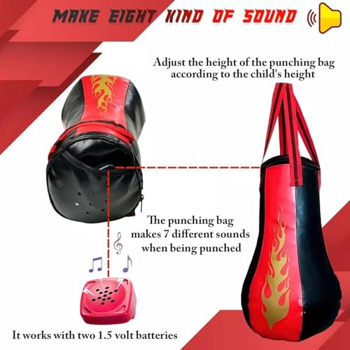 - متعة الملاكمة التفاعلية: تم تصميم طقم الملاكمة هذا لإشراك الأطفال في نشاط بدني ممتع يحاكي حركات وأصوات الملاكمة الحقيقية.