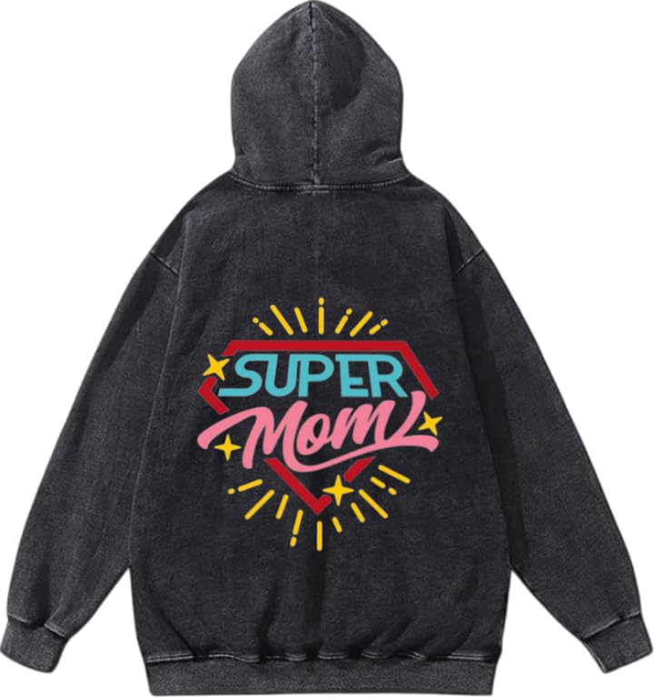 Generic - سويت شيرت بغطاء للرأس مطبوع عليه عبارة «Super Mom Mom dad Pard» 11