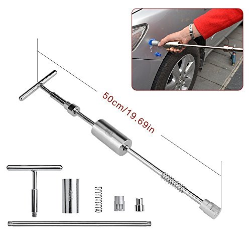 - The dent removal tool set inclues T bar hammer glue sticks and puller tabs, a glue gun .