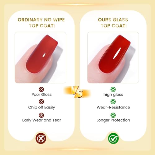 - ✔ High Gloss, Professional Shine – This super top coat provides an ultra-brilliant finish that makes any nail color, gel polish, or nail art stand out. The glossy layer adds depth and beauty, giving nails a salon-quality appearance at home or in professional salons.