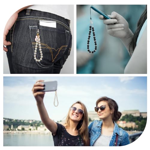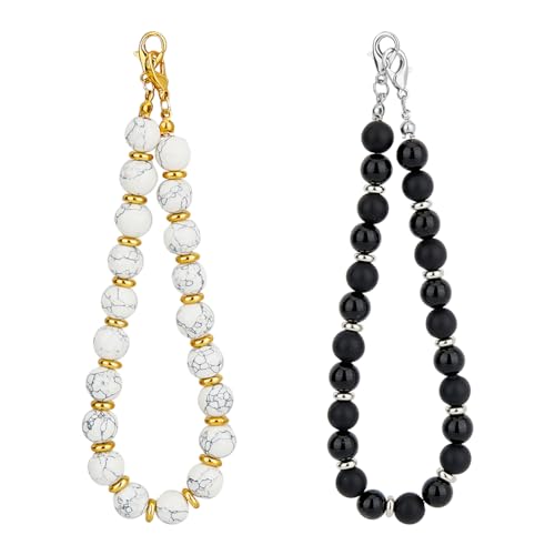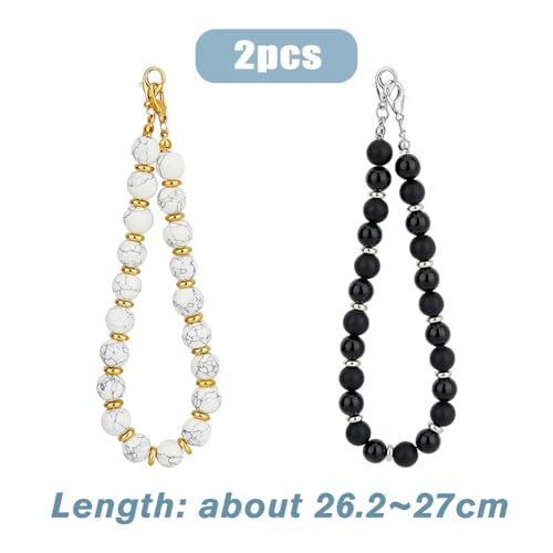 SUPERFINDINGS - SUPERFINDINGS 2PCS Beaded Phone Charm Detachable Cell Phone Lanyard Wristlet Handmade Natural Gemstone Cell Phone Bracelet for Mobile Accessories Decorations,26.2~27cm