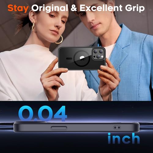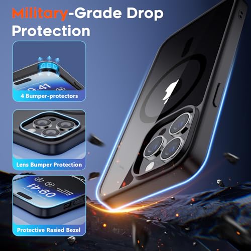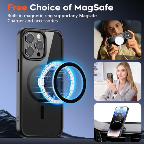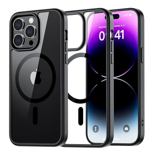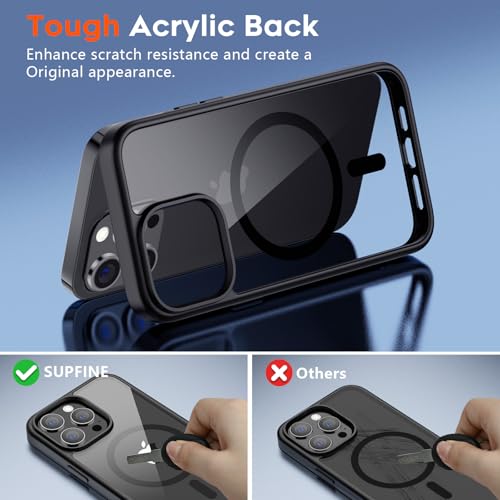 supfine - جراب حماية مغناطيسي لموبايل آيفون 14 برو ماكس متوافق مع ماج سيف، جراب صلب شفاف ممتص للصدمات من البولي يوريثين المقاوم للحرارة لحماية من الدرجة العسكرية من السقوط 3.6 م من سوبفاين، أسود شفاف.