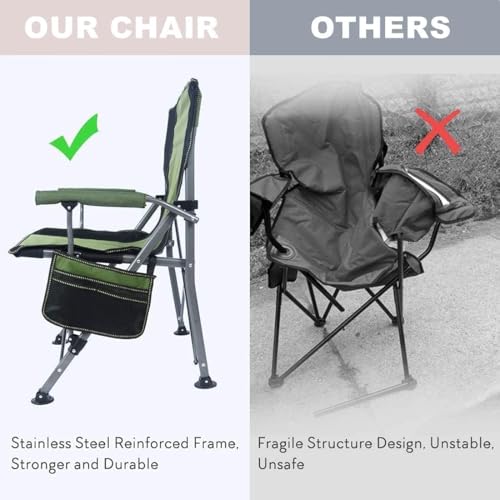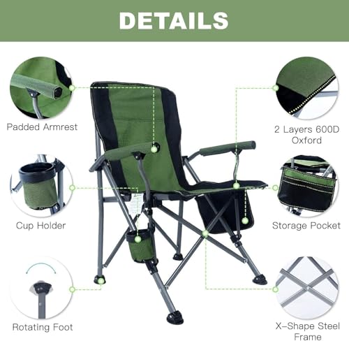 - Strong Frame: Strong stainless steel x-shaped fixed, double-layer 600D soft padded Oxford cloth, that provides heavy-duty and reliable strength, more stability, and safety. Support up to 160 Kgs, and ensure that you will have a long-lasting chair to enjoy outdoor activities for the whole year.