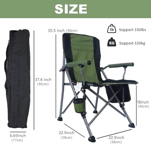 Supreouts - Folding Camping Chair, Portable Camping Chair with Cup Holder and Side Storage Pocket, Supports 160 Kgs for Camping Fishing Beach Hiking Picnic Garden Travelling Outdoor (Green)