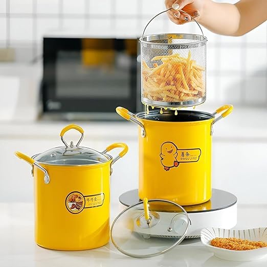 Generic - وعاء مقلاة عميقة من الستانلس ستيل سعة 3 لتر، مقلاة مطبخ صغيرة مع رف فلتر الزيت وغطاء ، من suq aleasr .