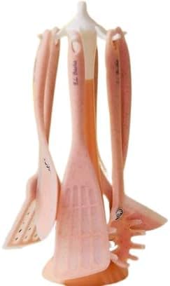 Generic - طقم أدوات توزيع سيليكون 6 قطع مع ستاند منظم - طقم توزيع "لوكس" مقاوم للحرارة بتصميم عصري لحماية الأواني وتزيين سطح المطبخ من suq aleasr . (وردي)