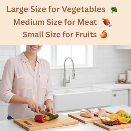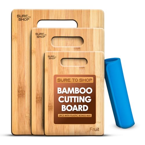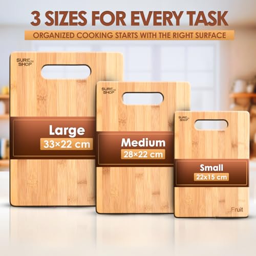 Sure to Shop - مجموعة الواح تقطيع من الخيزران من شور تو شوب مكونة من 3 قطع - للحوم والخضروات والفواكه - الواح تقطيع صديقة للبيئة ومتينة وغير قابلة للانزلاق مع مقبض