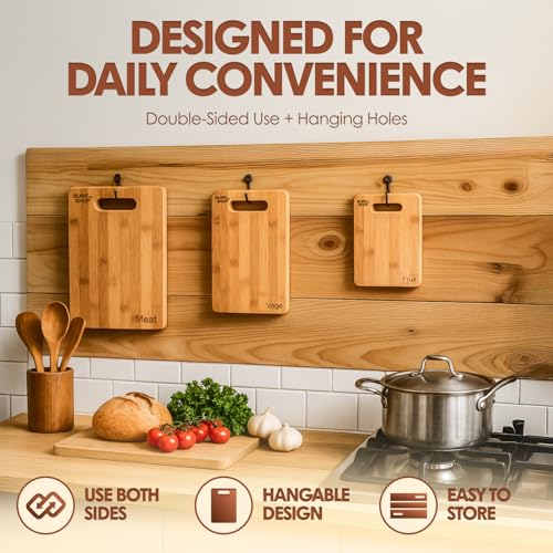 - مجموعة خيزران فاخرة: تتضمن 3 ألواح تقطيع تحمل علامات - للخضروات واللحوم والفواكه - لمنع التلوث المتبادل في مطبخك.