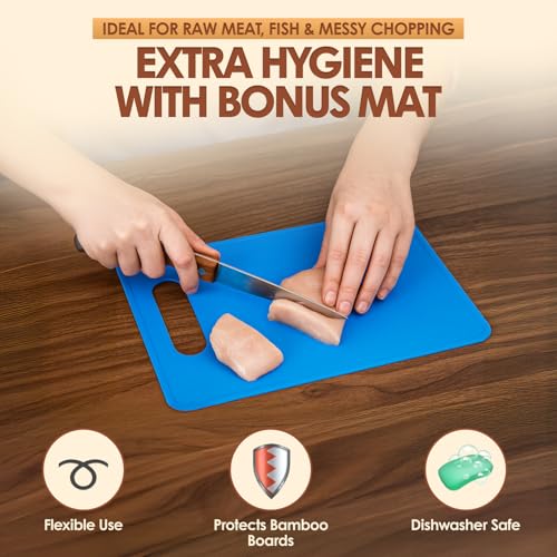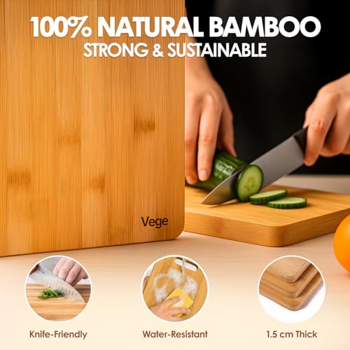 - صديقة للبيئة وآمنة: مصنوعة من الخيزران الطبيعي بنسبة 100%، هذه الألواح مستدامة وخالية من البيسفينول أ ولطيفة على السكاكين.