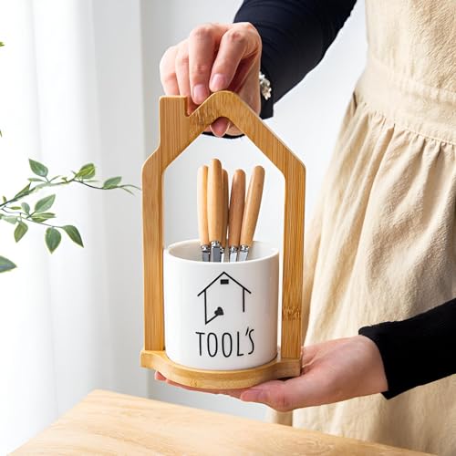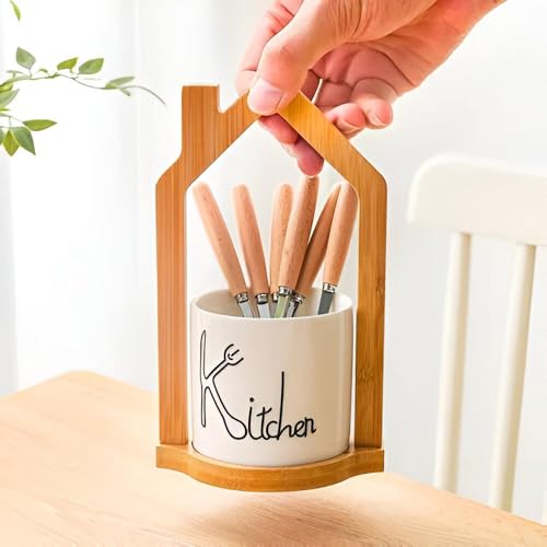 - Because of its robust build using wood and ceramic, the utensil holder is not just practical but also long-lasting, reducing the need for frequent replacement. It combines strength with elegance for sustainable usability.