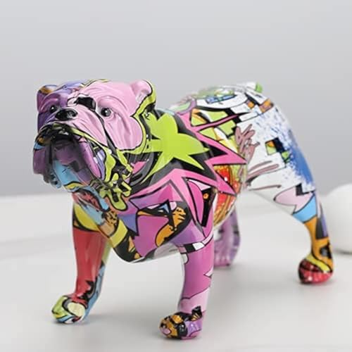 suruim - suruim Colorful Creative English Bulldog Figurines Modern Graffiti Art Home Decorations Bedroom Bookcase TV Stand Animal Decor (B)