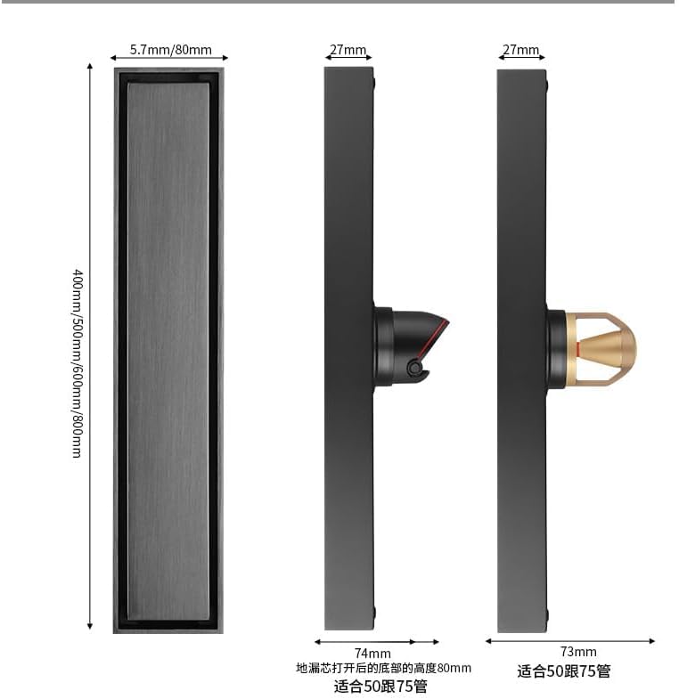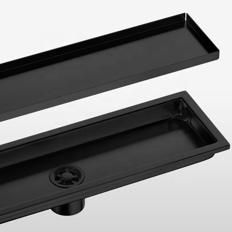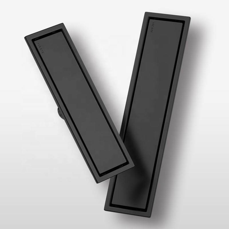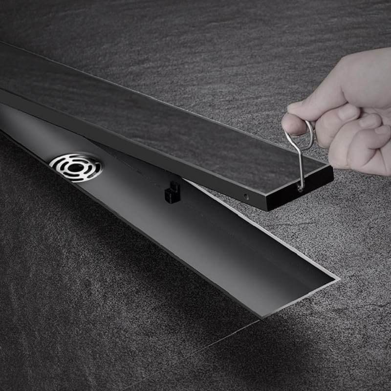 Generic - SUS304 Stainless Steel Shower Drain Rustproof – Removable Lid with Odor and Bounce Blocker – Modern Rectangle Design for Bathroom and Shower Drain High Flow (Black 40x10cm Hidden)