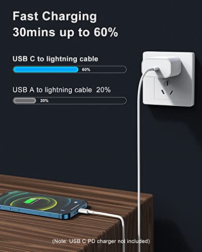 - ✪【شحن سريع 20 واط ومتانة】شاحن ابل السريع يشحن موبايل ايفون 12 الخاص بك بنسبة 50% في 30 دقيقة فقط، مما يوفر لك أكثر من ساعة واحدة مقارنة بكابل الشحن الأصلي بقدرة 5 واط. كيبل شاحن ايفون مصنوع من قلب نحاسي عالي النقاء وشريحة ذكية ذكية، مع حماية من الشحن الزائد، حماية مستقرة من التيار والتبديل التلقائي وحماية البطارية، ويمكن أن يدعم الشحن السريع حتى 2.4 امبير.